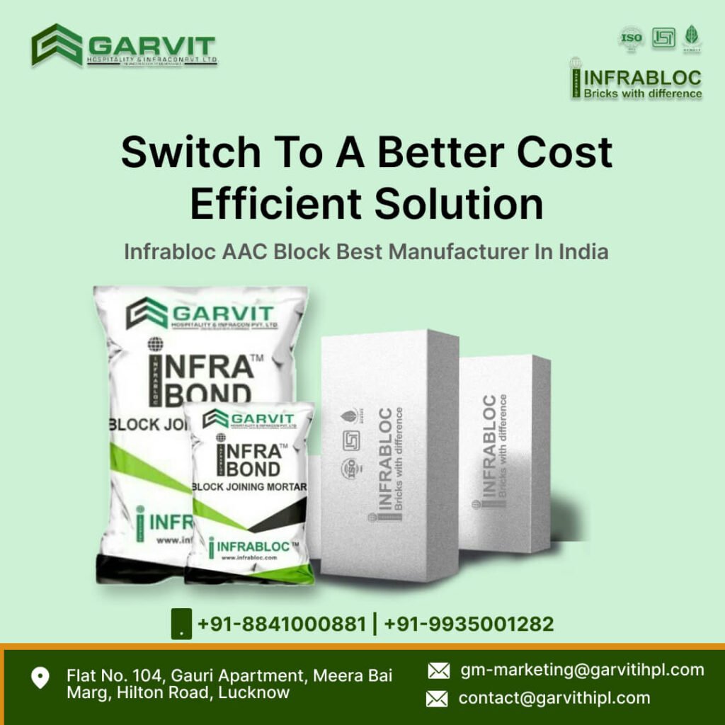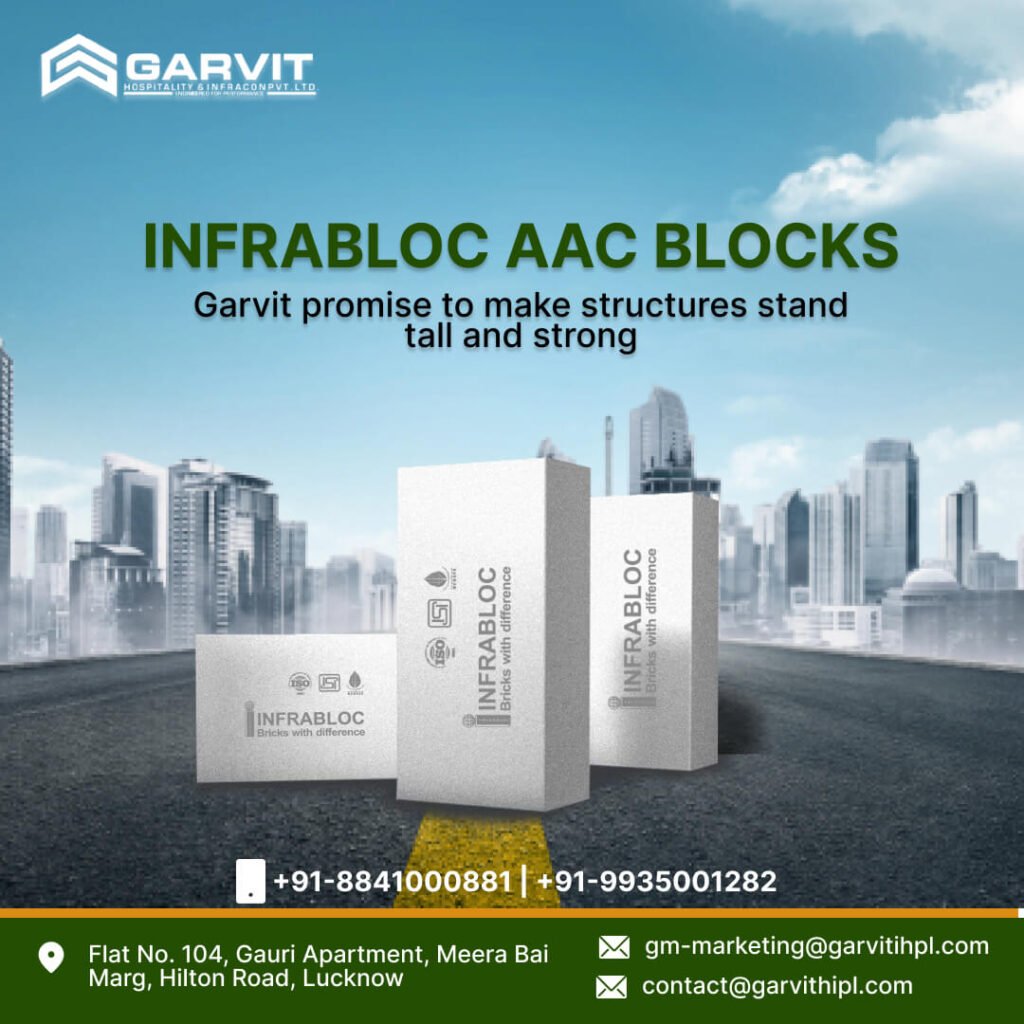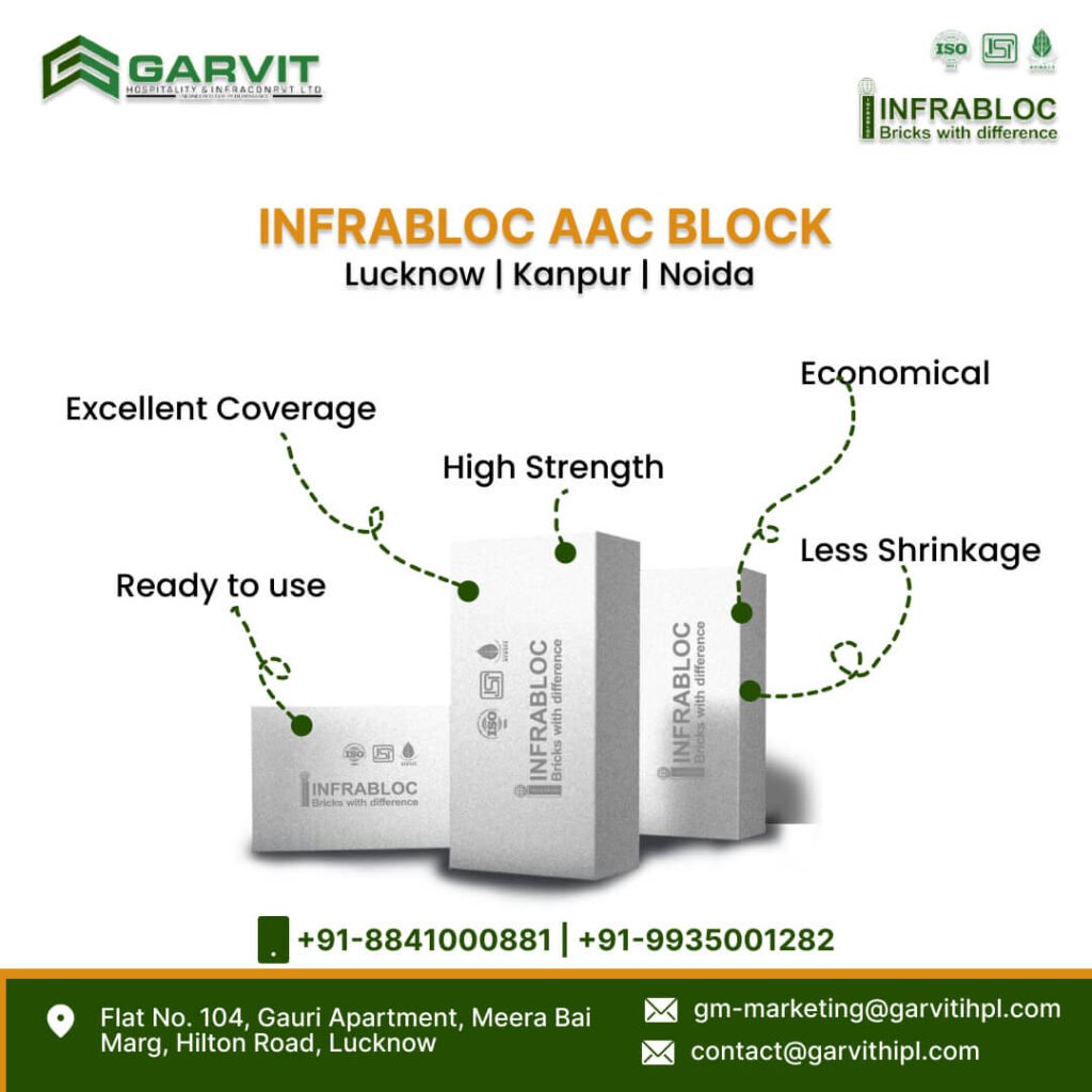 The Garvit Hospitality & Infracon Pvt. Ltd. is a leading AAC lightweight concrete blocks Manufacturer & supplier in Uttar Pradesh certified with ISO 9001-2015. Our focus is on making construction an Eco-friendly and quick process while helping building owners get a healthy abode. Renowned as an innovative and reliable green building material provider in India, the Use of advanced technology and innovative techniques makes us a highly recognized concrete block supplier all across Lucknow.